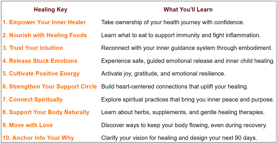 💛 Walk away with a complete healing plan for body, mind, and spirit